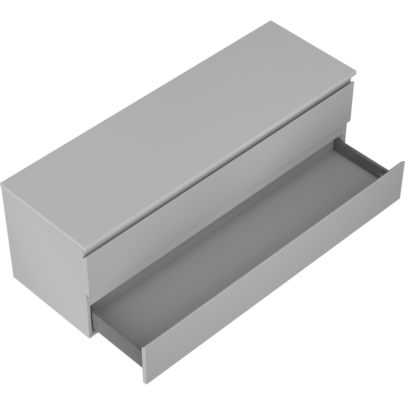 Specifikace produktu: Rozměry skříňky: Šířka: 140 cm Výška: 47 cm Hloubka: 46 cm Barva korpusu: Matně šedá Materiál korpusu: Lakovaná deska Barva čela: Matně šedá Materiál čela: Lakovaná MDF deska Struktura čela: Hladká Počet zásuvek: 2 Prostorná zásuvka s funkcí tlumeného dovírání Plný výsuv pro snadný přístup k obsahu zásuvky Povrch odolný vůči UV záření Rozměry pracovní desky: Šířka: 140,6 cm Hloubka: 46,5 cm Tloušťka: 1,8 cm Barva pracovní desky: Matně šedá Materiál pracovní desky: Lakovaná MDF deska Povrch odolný vůči UV záření Ideální jako podstavec pro umyvadla na desku Sestavený produkt