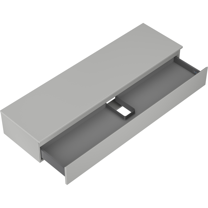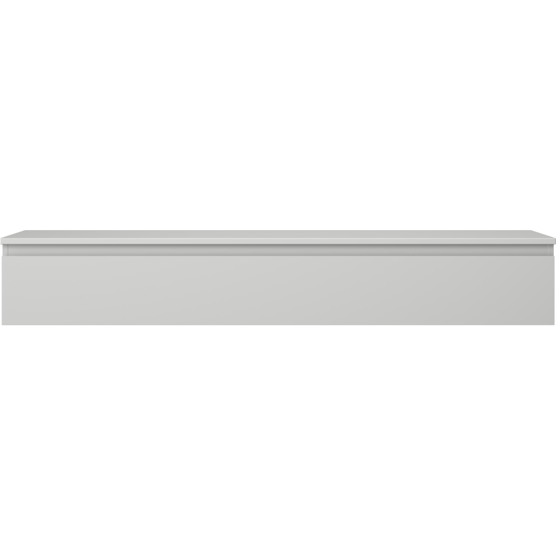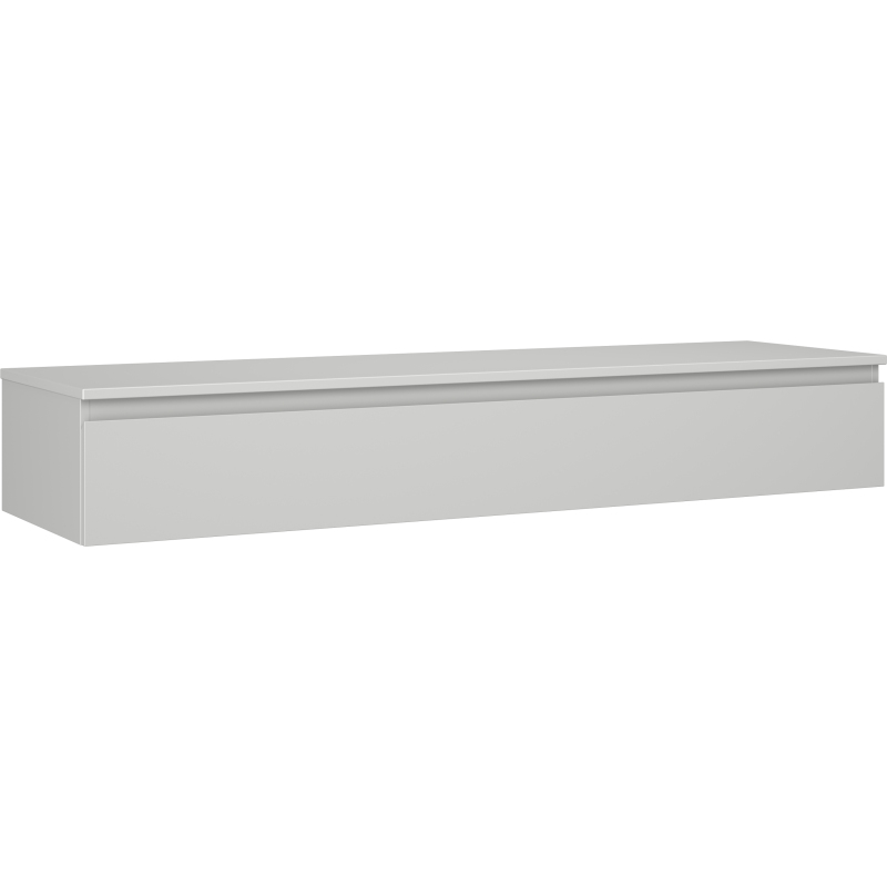 Specifikace produktu: Rozměry skříňky: Šířka: 160 cm Výška: 23,5 cm Hloubka: 46 cm Barva korpusu: Matně šedá Materiál korpusu: Lakovaná deska Barva čela: Matně šedá Materiál čela: Lakovaná MDF deska Struktura čela: Hladká Počet zásuvek: 1 Prostorná zásuvka s funkcí tlumeného dovírání Plný výsuv pro snadný přístup k obsahu zásuvky Povrch odolný vůči UV záření Rozměry pracovní desky: Šířka: 160,6 cm Hloubka: 46,5 cm Tloušťka: 1,8 cm Barva pracovní desky: Matně šedá Materiál pracovní desky: Lakovaná MDF deska Povrch odolný vůči UV záření Ideální jako podstavec pro umyvadla na desku Sestavený produkt