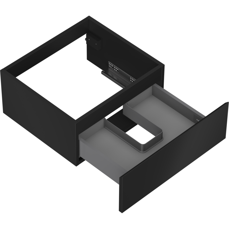 Specifikace produktu: Šířka: 50 cm Výška: 23,5 cm Hloubka: 46 cm Barva korpusu: Matná černá Materiál korpusu: Lakovaná deska Barva čela: Matná černá Materiál čela: Lakovaná MDF deska Struktura čela: Hladká Počet zásuvek: 1 Prostorná zásuvka s funkcí tlumeného dovírání Plný výsuv pro snadný přístup k obsahu zásuvky Povrch odolný vůči UV záření Lze doplnit pracovní deskou nebo umyvadlem Otis, Vela Smontovaný produkt