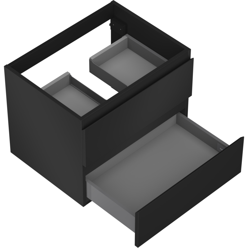Specifikace produktu: Šířka: 60 cm Výška: 47 cm Hloubka: 46 cm Barva korpusu: Matná černá Materiál korpusu: Lakovaná deska Barva čela: Matná černá Materiál čela: Lakovaná MDF deska Struktura čela: Hladká Počet zásuvek: 2 Prostorná zásuvka s funkcí tlumeného dovírání Plný výsuv pro snadný přístup k obsahu zásuvky Povrch odolný vůči UV záření Kombinovatelný s pracovní deskou nebo umyvadlem Otis, Vela Smontovaný produkt