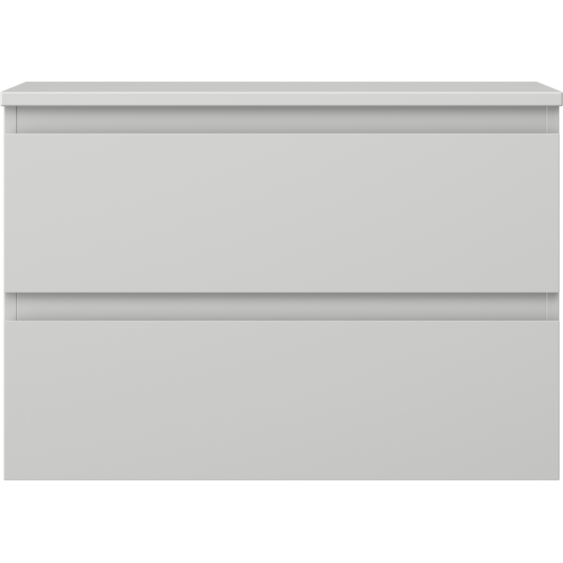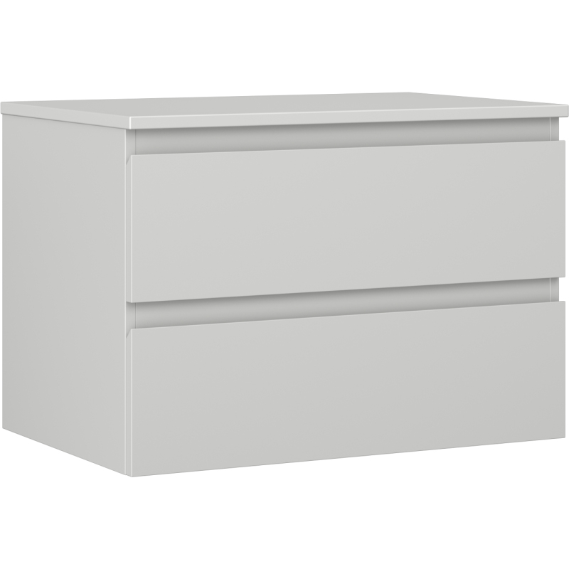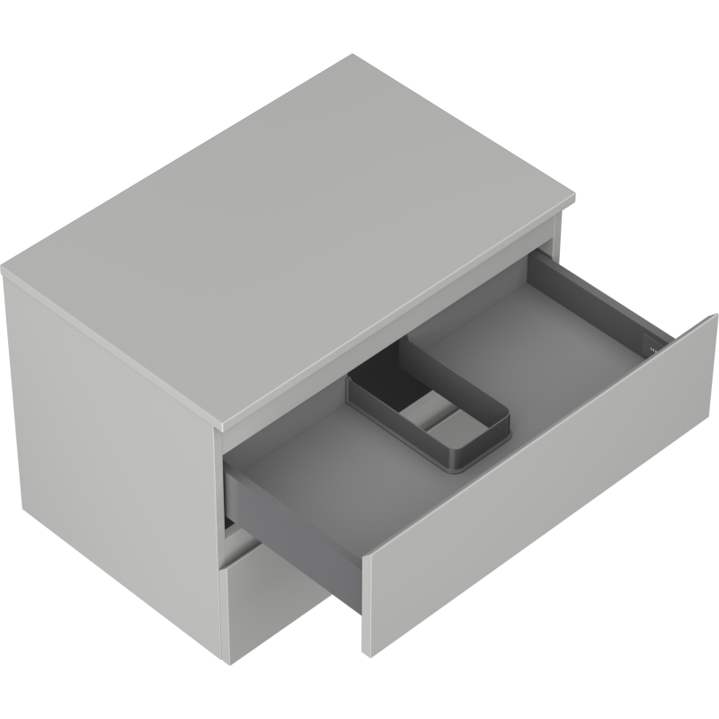 Specifikace produktu: Rozměry skříňky: Šířka: 70 cm Výška: 47 cm Hloubka: 46 cm Barva korpusu: Matně šedá Materiál korpusu: Lakovaná deska Barva čela: Matně šedá Materiál čela: Lakovaná MDF deska Struktura čela: Hladká Počet zásuvek: 2 Prostorná zásuvka s funkcí tlumeného dovírání Plný výsuv pro snadný přístup k obsahu zásuvky Povrch odolný vůči UV záření Rozměry pracovní desky: Šířka: 70,6 cm Hloubka: 46,5 cm Tloušťka: 1,8 cm Barva pracovní desky: Matně šedá Materiál pracovní desky: Lakovaná MDF deska Povrch odolný vůči UV záření Ideální jako podstavec pro umyvadla na desku Sestavený produkt