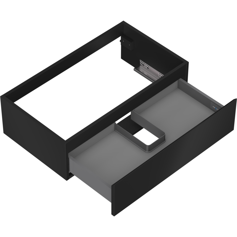Specifikace produktu: Šířka: 80 cm Výška: 23,5 cm Hloubka: 46 cm Barva korpusu: Matná černá Materiál korpusu: Lakovaná deska Barva čela: Matná černá Materiál čela: Lakovaná MDF deska Struktura čela: Hladká Počet zásuvek: 1 Prostorná zásuvka s funkcí tlumeného dovírání Plný výsuv pro snadný přístup k obsahu zásuvky Povrch odolný vůči UV záření Kombinovatelný s pracovní deskou nebo umyvadlem Otis, Vela Smontovaný produkt