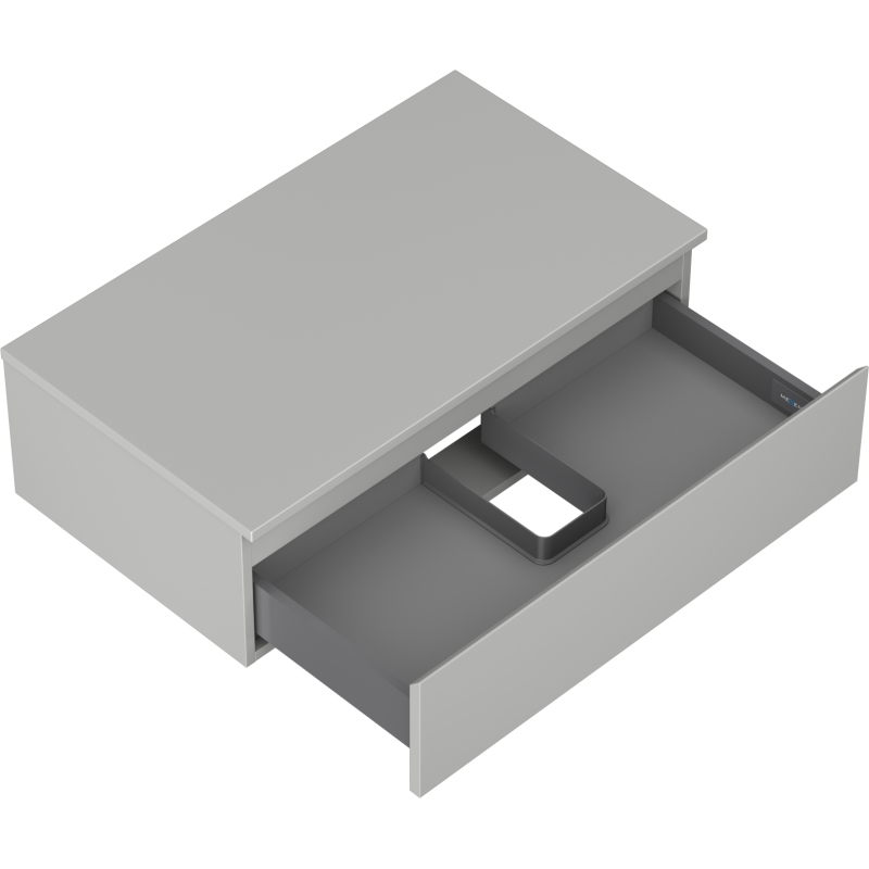 Specifikace produktu: Rozměry skříňky: Šířka: 80 cm Výška: 23,5 cm Hloubka: 46 cm Barva korpusu: Matně šedá Materiál korpusu: Lakovaná deska Barva čela: Matně šedá Materiál čela: Lakovaná MDF deska Struktura čela: Hladká Počet zásuvek: 1 Prostorná zásuvka s funkcí tlumeného dovírání Plný výsuv pro snadný přístup k obsahu zásuvky Povrch odolný vůči UV záření Rozměry pracovní desky: Šířka: 80,6 cm Hloubka: 46,5 cm Tloušťka: 1,8 cm Barva pracovní desky: Matně šedá Materiál pracovní desky: Lakovaná MDF deska Povrch odolný vůči UV záření Ideální jako podstavec pro umyvadla na desku Sestavený produkt