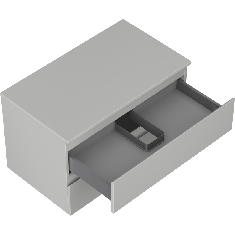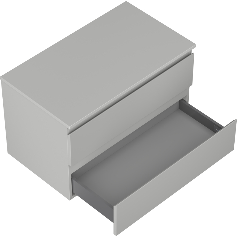 Specifikace produktu: Rozměry skříňky: Šířka: 80 cm Výška: 47 cm Hloubka: 46 cm Barva korpusu: Matně šedá Materiál korpusu: Lakovaná deska Barva čela: Matně šedá Materiál čela: Lakovaná MDF deska Struktura čela: Hladká Počet zásuvek: 2 Prostorná zásuvka s funkcí tlumeného dovírání Plný výsuv pro snadný přístup k obsahu zásuvky Povrch odolný vůči UV záření Rozměry pracovní desky: Šířka: 80,6 cm Hloubka: 46,5 cm Tloušťka: 1,8 cm Barva pracovní desky: Matně šedá Materiál pracovní desky: Lakovaná MDF deska Povrch odolný vůči UV záření Ideální jako podstavec pro umyvadla na desku Sestavený produkt
