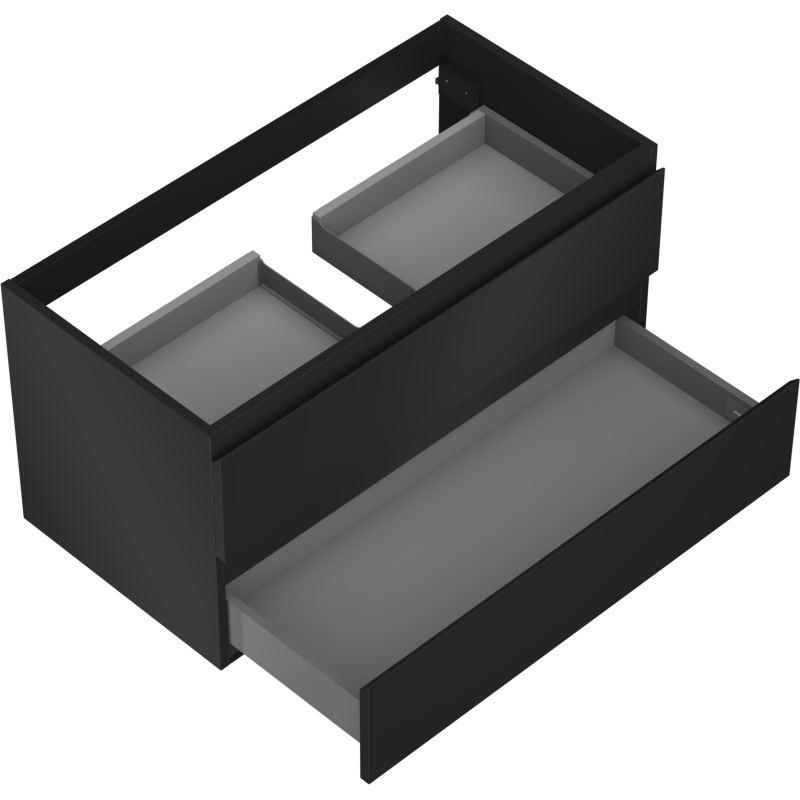 Specifikace produktu: Šířka: 90 cm Výška: 47 cm Hloubka: 46 cm Barva korpusu: Matná černá Materiál korpusu: Lakovaná deska Barva čela: Matná černá Materiál čela: Lakovaná MDF deska Struktura čela: Hladká Počet zásuvek: 2 Prostorná zásuvka s funkcí tlumeného dovírání Plný výsuv pro snadný přístup k obsahu zásuvky Povrch odolný vůči UV záření Kombinovatelný s pracovní deskou nebo umyvadlem Otis, Vela Smontovaný produkt