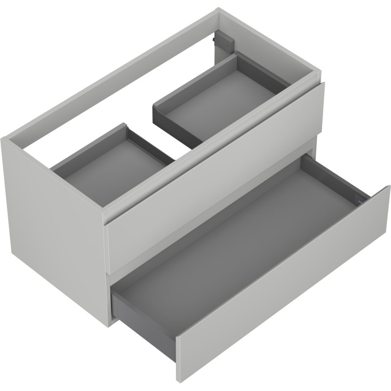 Specifikace produktu: Šířka: 90 cm Výška: 47 cm Hloubka: 46 cm Barva korpusu: Matně šedá Materiál korpusu: Lakovaná deska Barva čela: Matně šedá Materiál čela: Lakovaná MDF deska Struktura čela: Hladká Počet zásuvek: 2 Prostorná zásuvka s funkcí tlumeného dovírání Plný výsuv pro snadný přístup k obsahu zásuvky Povrch odolný vůči UV záření Kombinovatelný s pracovní deskou nebo umyvadlem Otis, Vela Smontovaný produkt