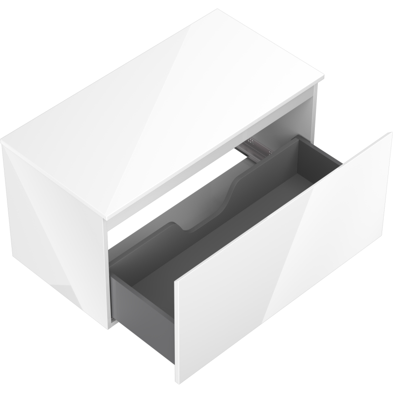 Specifikace produktu: Rozměry skříňky: Šířka: 90 cm Výška: 47 cm Hloubka: 46 cm Barva korpusu: Lesklá bílá Materiál korpusu: Lakovaná deska Barva čela: Lesklá bílá Materiál čela: Lakovaná MDF deska Struktura čela: Hladká Počet zásuvek: 1 Prostorná zásuvka s funkcí tlumeného dovírání Plný výsuv pro snadný přístup k obsahu zásuvky Povrch odolný vůči UV záření Rozměry pracovní desky: Šířka: 90,6 cm Hloubka: 46,5 cm Tloušťka: 1,8 cm Barva pracovní desky: Lesklá bílá Materiál pracovní desky: Lakovaná MDF deska Povrch odolný vůči UV záření Ideální jako podstavec pro umyvadla na desku Sestavený produkt