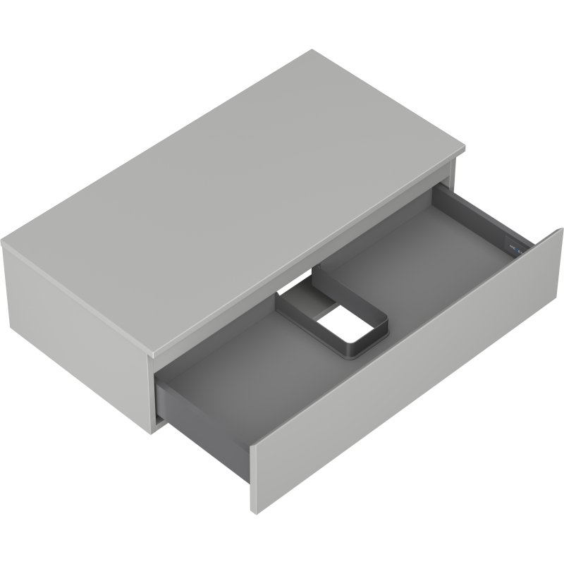 Specifikace produktu: Rozměry skříňky: Šířka: 90 cm Výška: 23,5 cm Hloubka: 46 cm Barva korpusu: Matně šedá Materiál korpusu: Lakovaná deska Barva čela: Matně šedá Materiál čela: Lakovaná MDF deska Struktura čela: Hladká Počet zásuvek: 1 Prostorná zásuvka s funkcí tlumeného dovírání Plný výsuv pro snadný přístup k obsahu zásuvky Povrch odolný vůči UV záření Rozměry pracovní desky: Šířka: 90,6 cm Hloubka: 46,5 cm Tloušťka: 1,8 cm Barva pracovní desky: Matně šedá Materiál pracovní desky: Lakovaná MDF deska Povrch odolný vůči UV záření Ideální jako podstavec pro umyvadla na desku Sestavený produkt