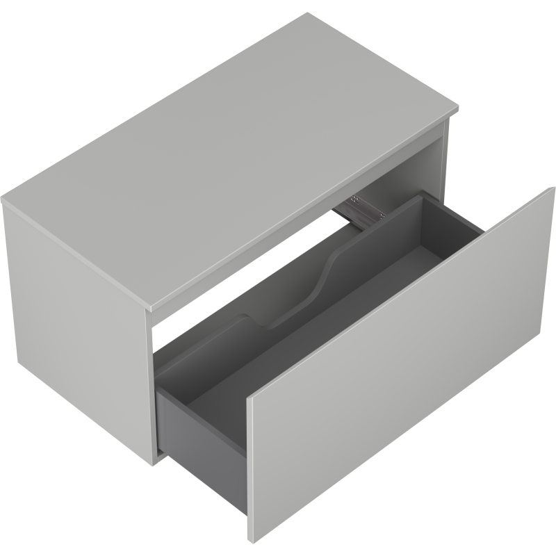 Specifikace produktu: Rozměry skříňky: Šířka: 90 cm Výška: 47 cm Hloubka: 46 cm Barva korpusu: Matně šedá Materiál korpusu: Lakovaná deska Barva čela: Matně šedá Materiál čela: Lakovaná MDF deska Struktura čela: Hladká Počet zásuvek: 1 Prostorná zásuvka s funkcí tlumeného dovírání Plný výsuv pro snadný přístup k obsahu zásuvky Povrch odolný vůči UV záření Rozměry pracovní desky: Šířka: 90,6 cm Hloubka: 46,5 cm Tloušťka: 1,8 cm Barva pracovní desky: Matně šedá Materiál pracovní desky: Lakovaná MDF deska Povrch odolný vůči UV záření Ideální jako podstavec pro umyvadla na desku Sestavený produkt