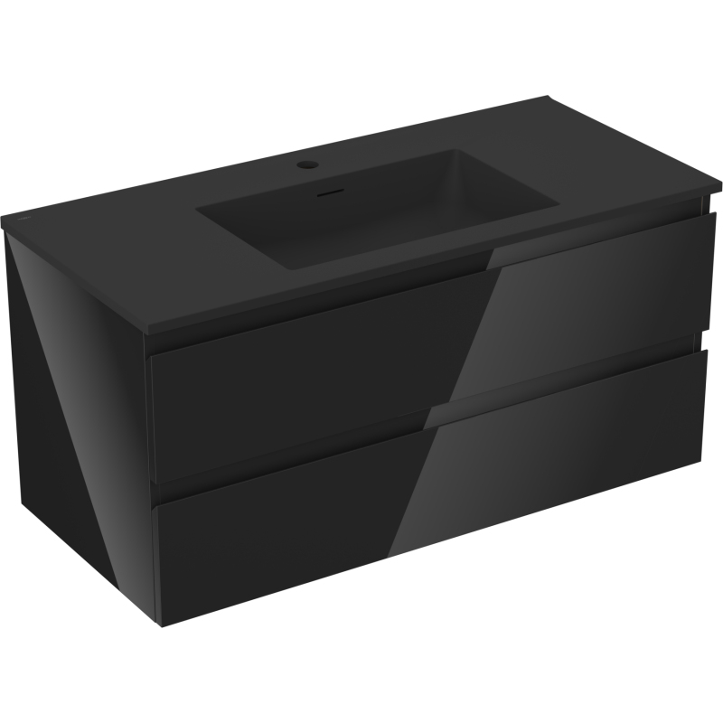 Specyfikacja produktu: Wymiary szafki: Szerokość: 100 cm Głębokość: 46 cm Wysokość: 47 cm Kolor korpus: Czarny połysk Materiał korpus: Płyta lakierowana Kolor front: Czarny połysk Materiał front: Płyta MDF lakierowana Struktura frontu: Gładka Ilość szuflad: 2 Przestronna szuflada z funkcją cichego domyku Powierzchnia odporna na promienie UV Wymiary umywalki: Szerokość: 101 cm Głębokość: 46,5 cm Wysokość: 16,5 cm Kolor umywalki: Czarny mat Materiał umywalki: Konglomerat Otwór przelewowy: Tak Otwór na baterie: Tak Produkt zmontowany