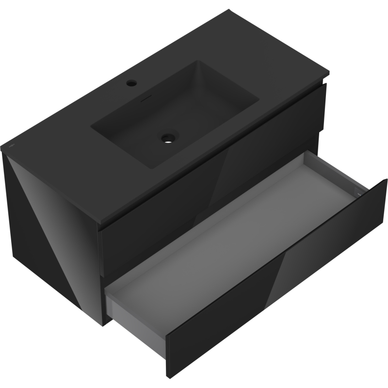 Mexen Orio szafka łazienkowa 100 cm z umywalką Otis, 2 szuflady, czarna połysk/czarna mat - 91A10-10047-2-BFF70-W18M71