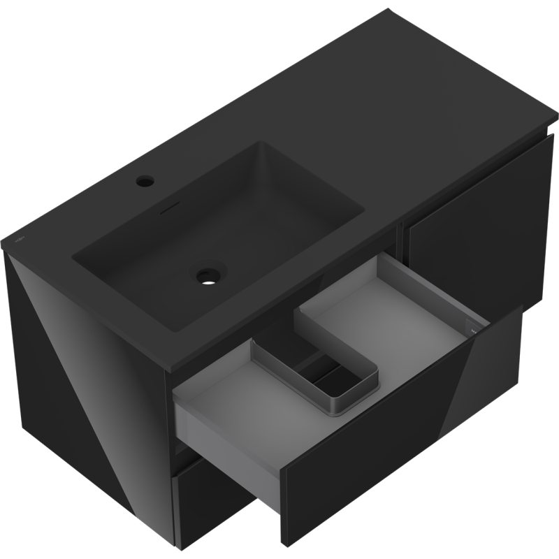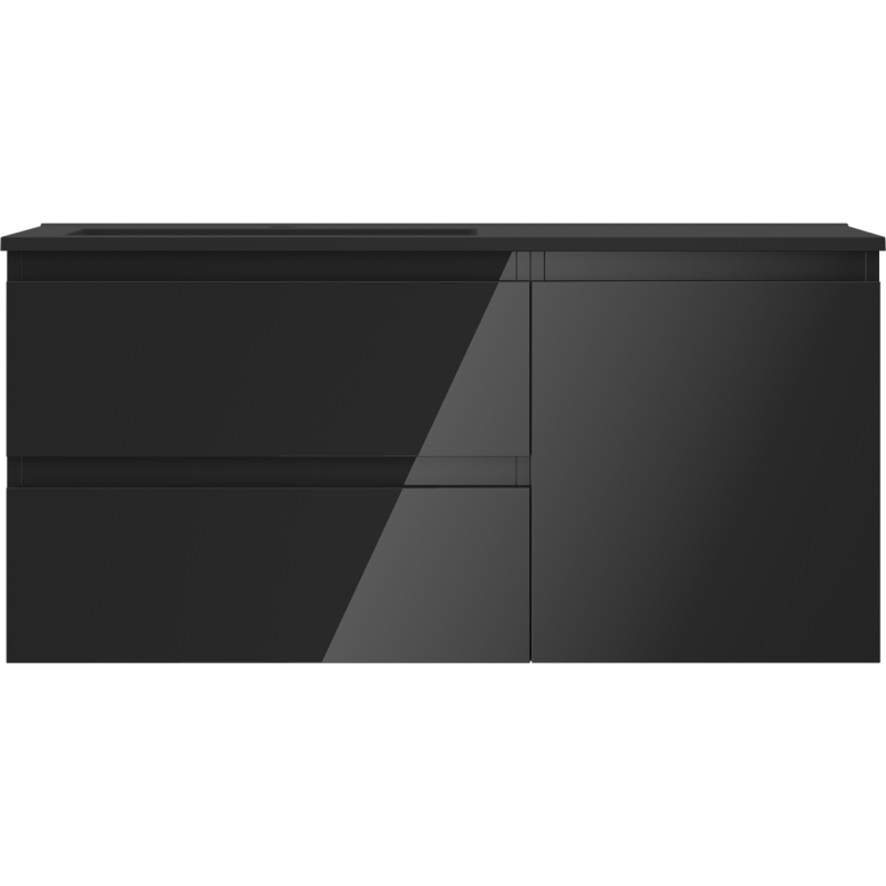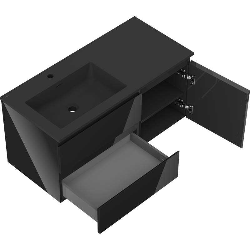 Mexen Orio szafka łazienkowa 100 cm z umywalką Otis lewą, 2S, 1D, czarna połysk/czarna mat - 91A13-10047-3-BBFFF70-W18L71