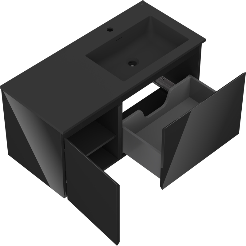 Mexen Orio szafka łazienkowa 100 cm z umywalką Otis prawą, 1S, 1D, czarna połysk/czarna mat - 91A13-10047-3-BBFF70-W18P71