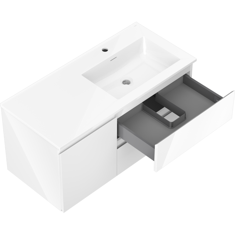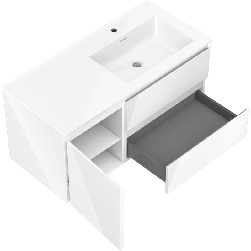 Mexen Orio szafka łazienkowa 100 cm z umywalką Otis prawą, 2S, 1D, biała połysk - 91A13-10047-3-BBFFF00-W18P00