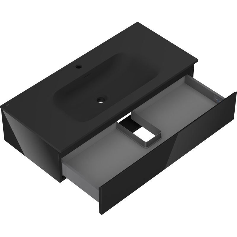 Specyfikacja produktu: Wymiary szafki: Szerokość: 100 cm Głębokość: 46 cm Wysokość: 23,5 cm Kolor korpus: Czarny połysk Materiał korpus: Płyta lakierowana Kolor front: Czarny połysk Materiał front: Płyta MDF lakierowana Struktura frontu: Gładka Ilość szuflad: 1 Przestronna szuflada z funkcją cichego domyku Powierzchnia odporna na promienie UV Wymiary umywalki: Szerokość: 101 cm Głębokość: 46,5 cm Wysokość: 16,5 cm Kolor umywalki: Czarny mat Materiał umywalki: Konglomerat Otwór przelewowy: Tak Otwór na baterie: Tak Produkt zmontowany
