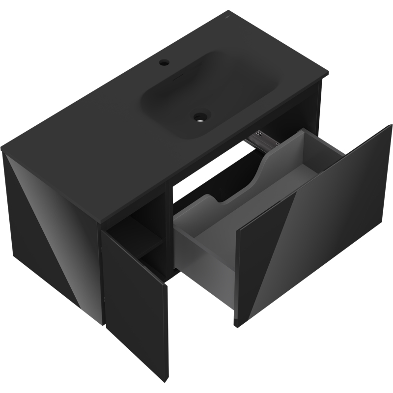 Mexen Orio szafka łazienkowa 100 cm z umywalką Vela prawą, 1S, 1D, czarna połysk/czarna mat - 91A13-10047-3-BBFF70-W23P71