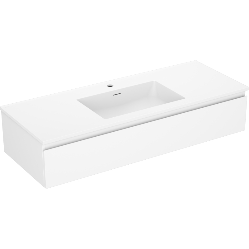 Specyfikacja produktu: Wymiary szafki: Szerokość: 120 cm Głębokość: 46 cm Wysokość: 23,5 cm Kolor korpus: Biały mat Materiał korpus: Płyta lakierowana Kolor front: Biały mat Materiał front: Płyta MDF lakierowana Struktura frontu: Gładka Ilość szuflad: 1 Przestronna szuflada z funkcją cichego domyku Powierzchnia odporna na promienie UV Wymiary umywalki: Szerokość: 121 cm Głębokość: 46,5 cm Wysokość: 16,5 cm Kolor umywalki: Biały mat Materiał umywalki: Konglomerat Otwór przelewowy: Tak Otwór na baterie: Tak Produkt zmontowany