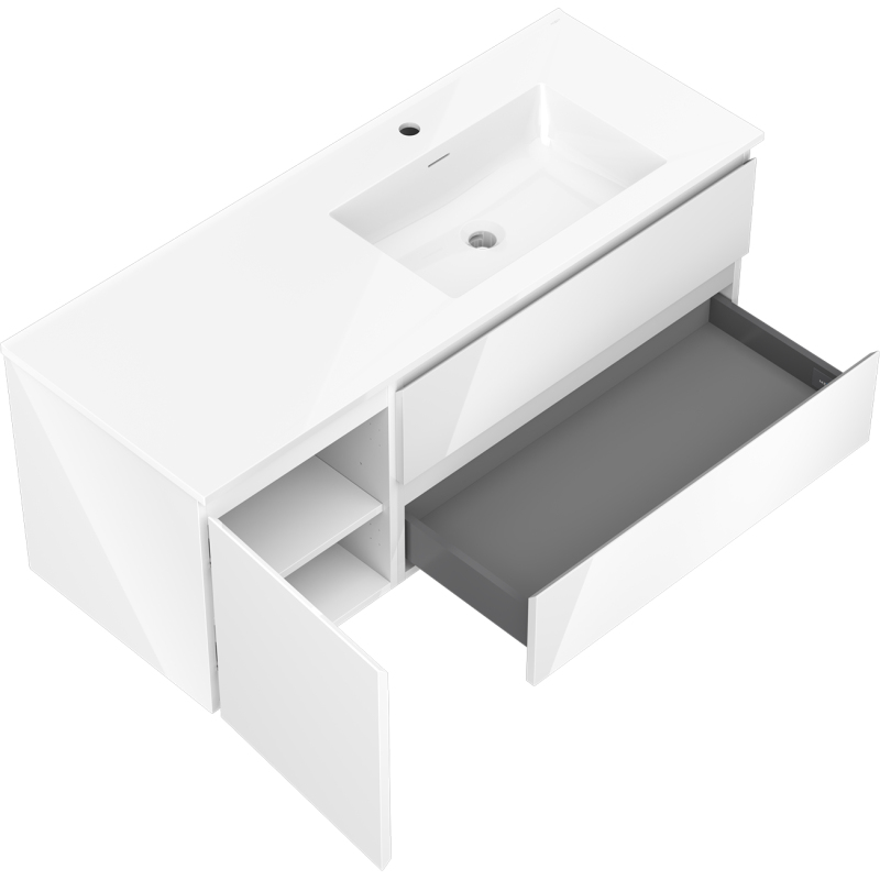 Mexen Orio szafka łazienkowa 120 cm z umywalką Otis prawą, 2S, 1D, biała połysk - 91A13-12047-3-BBFFF00-W18P00