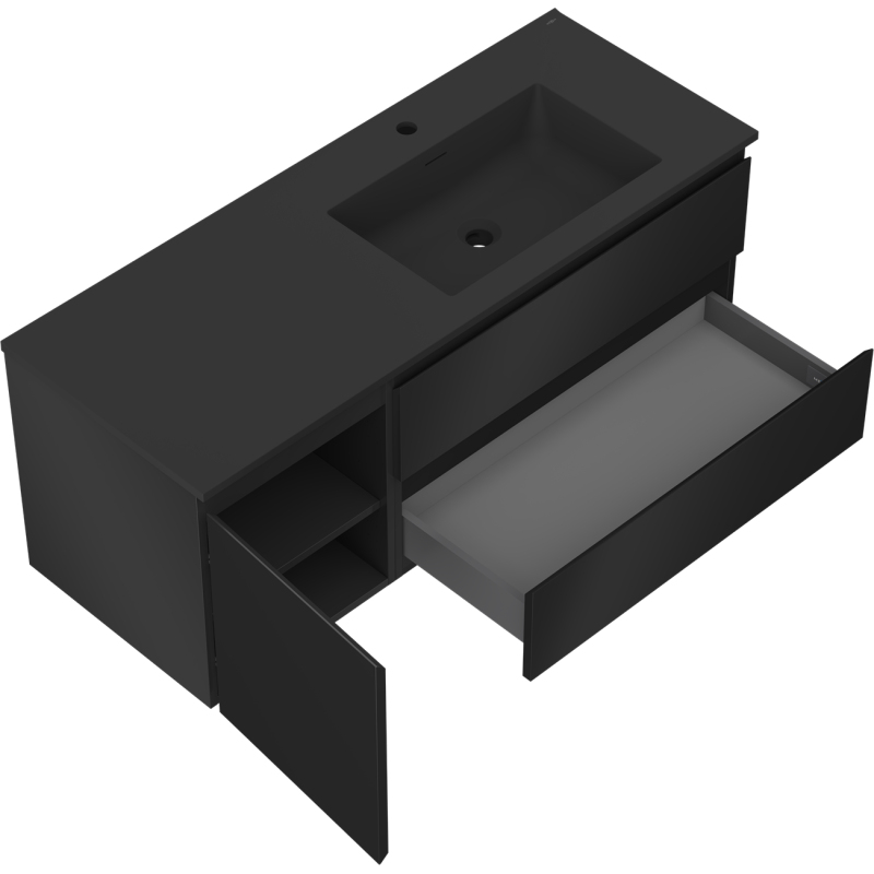 Mexen Orio szafka łazienkowa 120 cm z umywalką Otis prawą, 2S, 1D, czarna mat - 91A13-12047-3-BBFFF71-W18P71