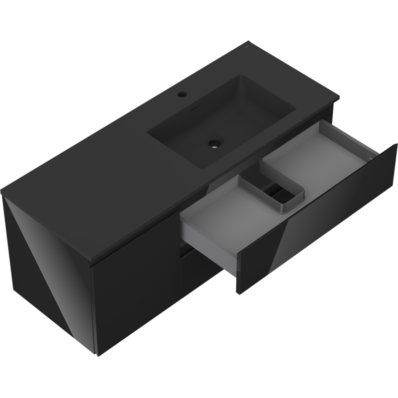 Mexen Orio szafka łazienkowa 120 cm z umywalką Otis prawą, 2S, 1D, czarna połysk/czarna mat - 91A13-12047-3-BBFFF70-W18P71