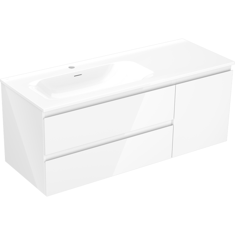 Mexen Orio szafka łazienkowa 120 cm z umywalką Vela lewą, 2S, 1D, biała połysk - 91A13-12047-3-BBFFF00-W23L00