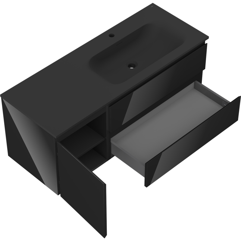 Mexen Orio szafka łazienkowa 120 cm z umywalką Vela prawą, 2S, 1D, czarna połysk/czarna mat - 91A13-12047-3-BBFFF70-W23P71