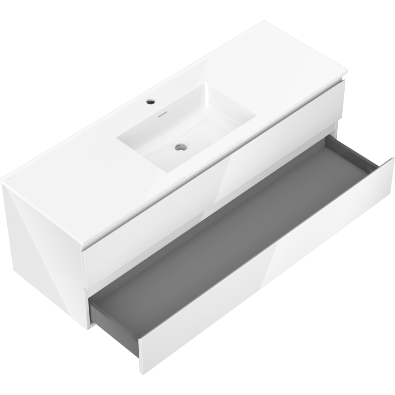 Specyfikacja produktu: Wymiary szafki: Szerokość: 140 cm Głębokość: 46 cm Wysokość: 47 cm Kolor korpus: Biały połysk Materiał korpus: Płyta lakierowana Kolor front: Biały połysk Materiał front: Płyta MDF lakierowana Struktura frontu: Gładka Ilość szuflad: 2 Przestronna szuflada z funkcją cichego domyku Powierzchnia odporna na promienie UV Wymiary umywalki: Szerokość: 141 cm Głębokość: 46,5 cm Wysokość: 16,5 cm Kolor umywalki: Biały połysk Materiał umywalki: Konglomerat Otwór przelewowy: Tak Otwór na baterie: Tak Produkt zmontowany