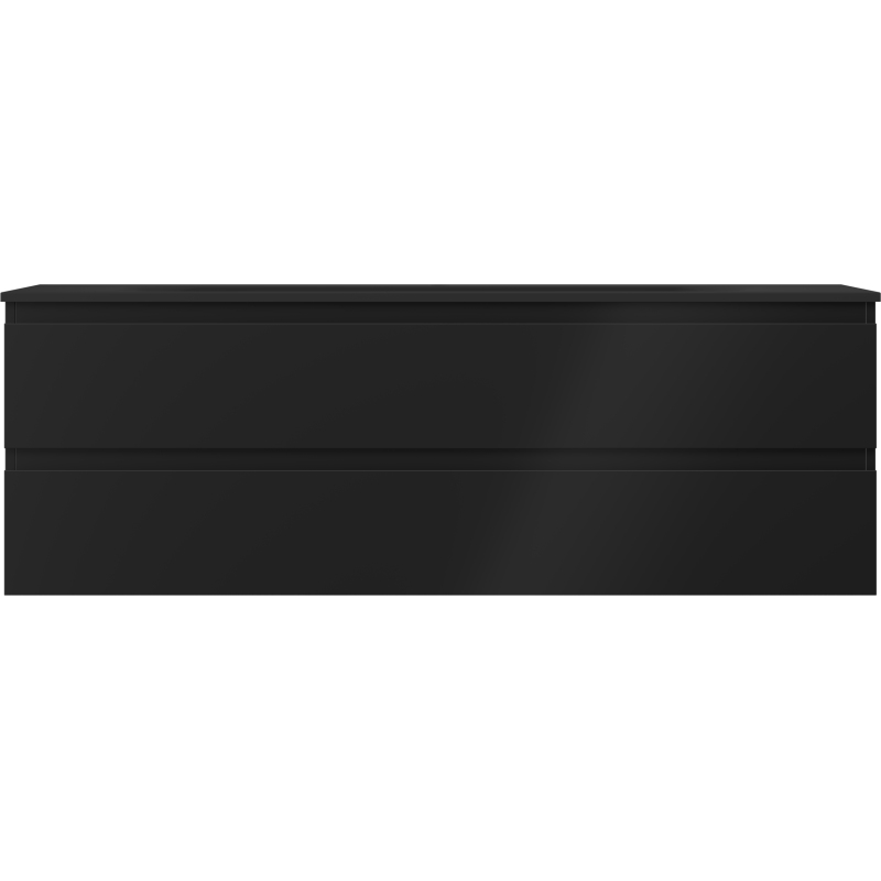 Specyfikacja produktu: Wymiary szafki: Szerokość: 140 cm Głębokość: 46 cm Wysokość: 47 cm Kolor korpus: Czarny mat Materiał korpus: Płyta lakierowana Kolor front: Czarny mat Materiał front: Płyta MDF lakierowana Struktura frontu: Gładka Ilość szuflad: 2 Przestronna szuflada z funkcją cichego domyku Powierzchnia odporna na promienie UV Wymiary umywalki: Szerokość: 141 cm Głębokość: 46,5 cm Wysokość: 16,5 cm Kolor umywalki: Czarny mat Materiał umywalki: Konglomerat Otwór przelewowy: Tak Otwór na baterie: Tak Produkt zmontowany