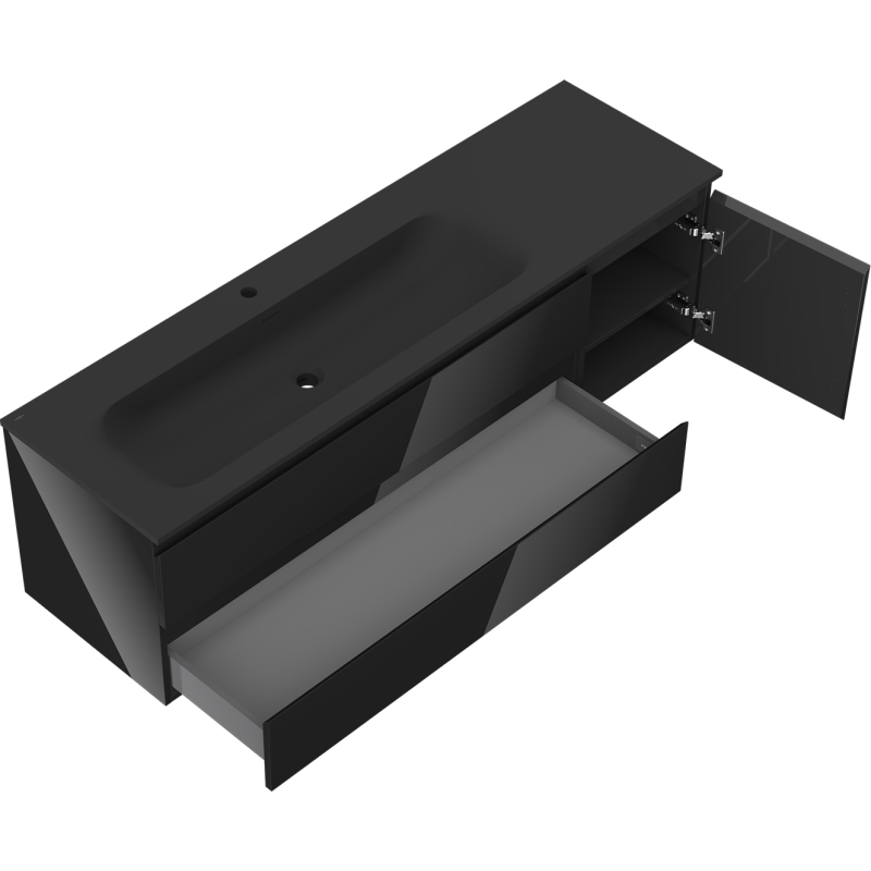 Mexen Orio szafka łazienkowa 160 cm z umywalką Vela lewą, 2S, 1D, czarna połysk/czarna mat - 91A13-16047-3-BBFFF70-W23L71