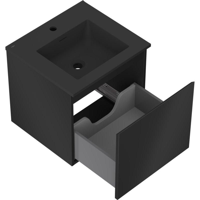 Specyfikacja produktu: Wymiary szafki: Szerokość: 50 cm Głębokość: 46 cm Wysokość: 47 cm Kolor korpus: Czarny mat Materiał korpus: Płyta lakierowana Kolor front: Czarny mat Materiał front: Płyta MDF lakierowana Struktura frontu: Gładka Ilość szuflad: 1 Przestronna szuflada z funkcją cichego domyku Powierzchnia odporna na promienie UV Wymiary umywalki: Szerokość: 51 cm Głębokość: 46,5 cm Wysokość: 16,5 cm Kolor umywalki: Czarny mat Materiał umywalki: Konglomerat Otwór przelewowy: Tak Otwór na baterie: Tak Produkt zmontowany