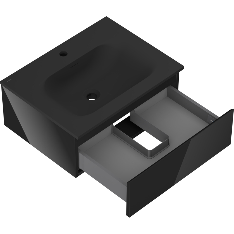 Mexen Orio szafka łazienkowa 60 cm z umywalką Vela, 1 szuflada, czarna połysk/czarna mat - 91A10-06023-1-BF70-W23M71