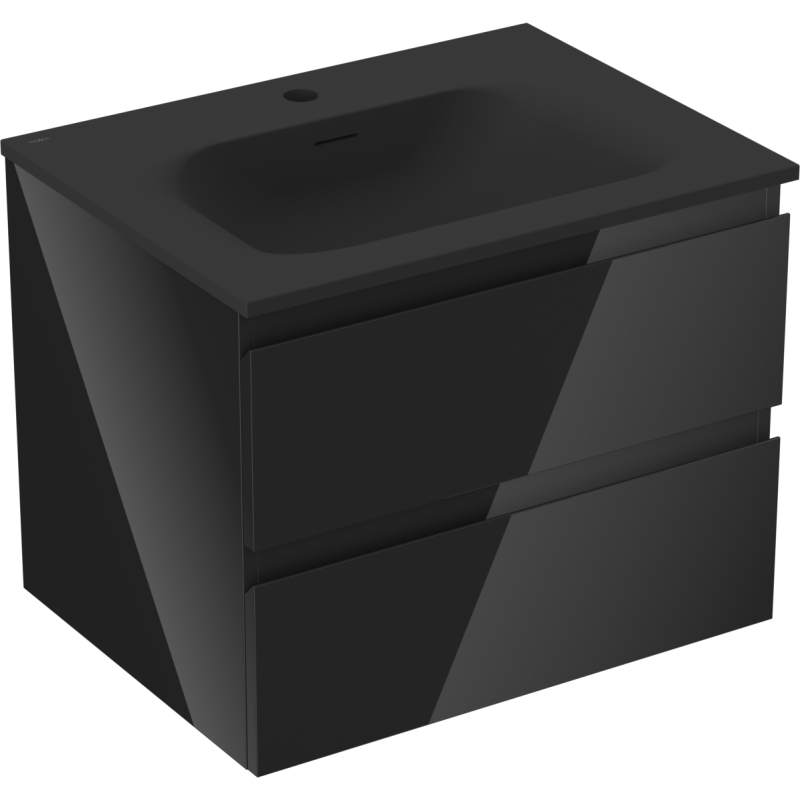 Specyfikacja produktu: Wymiary szafki: Szerokość: 60 cm Głębokość: 46 cm Wysokość: 47 cm Kolor korpus: Czarny połysk Materiał korpus: Płyta lakierowana Kolor front: Czarny połysk Materiał front: Płyta MDF lakierowana Struktura frontu: Gładka Ilość szuflad: 2 Przestronna szuflada z funkcją cichego domyku Powierzchnia odporna na promienie UV Wymiary umywalki: Szerokość: 61 cm Głębokość: 46,5 cm Wysokość: 16,5 cm Kolor umywalki: Czarny mat Materiał umywalki: Konglomerat Otwór przelewowy: Tak Otwór na baterie: Tak Produkt zmontowany