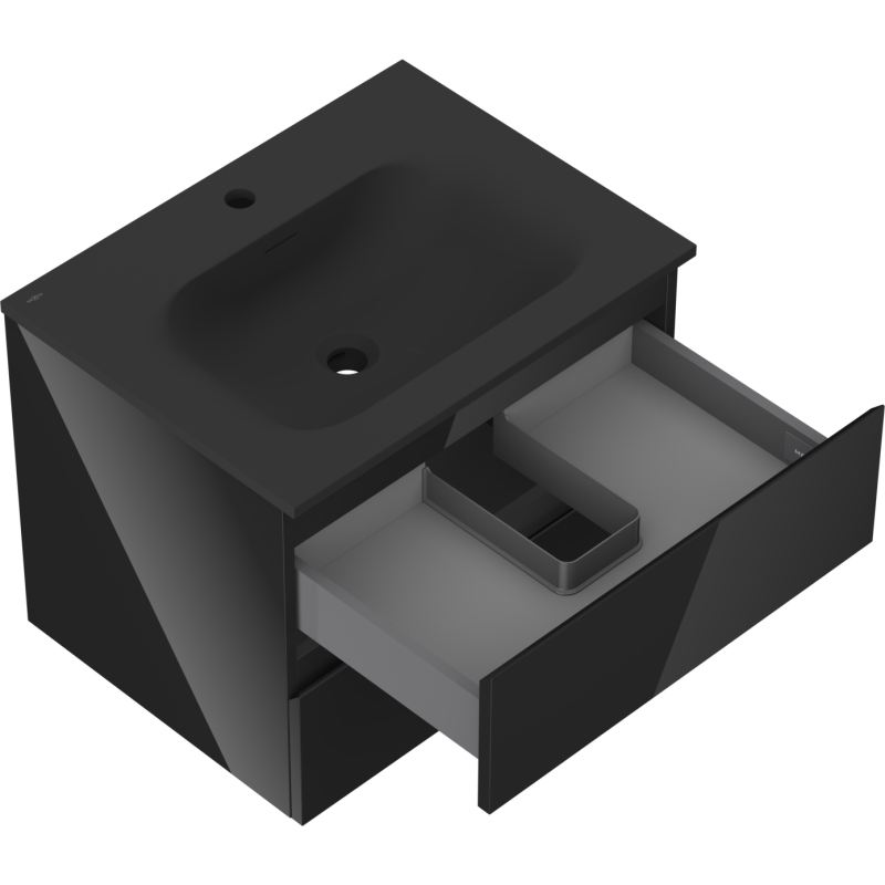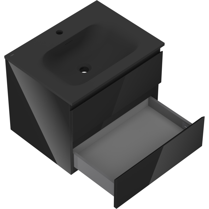 Mexen Orio szafka łazienkowa 60 cm z umywalką Vela, 2 szuflady, czarna połysk/czarna mat - 91A10-06047-2-BFF70-W23M71