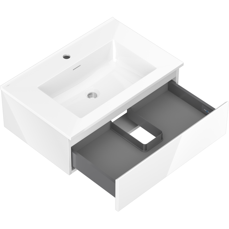 Specyfikacja produktu: Wymiary szafki: Szerokość: 70 cm Głębokość: 46 cm Wysokość: 23,5 cm Kolor korpus: Biały połysk Materiał korpus: Płyta lakierowana Kolor front: Biały połysk Materiał front: Płyta MDF lakierowana Struktura frontu: Gładka Ilość szuflad: 1 Przestronna szuflada z funkcją cichego domyku Powierzchnia odporna na promienie UV Wymiary umywalki: Szerokość: 71 cm Głębokość: 46,5 cm Wysokość: 16,5 cm Kolor umywalki: Biały połysk Materiał umywalki: Konglomerat Otwór przelewowy: Tak Otwór na baterie: Tak Produkt zmontowany