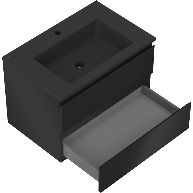 Specyfikacja produktu: Wymiary szafki: Szerokość: 70 cm Głębokość: 46 cm Wysokość: 47 cm Kolor korpus: Czarny mat Materiał korpus: Płyta lakierowana Kolor front: Czarny mat Materiał front: Płyta MDF lakierowana Struktura frontu: Gładka Ilość szuflad: 2 Przestronna szuflada z funkcją cichego domyku Powierzchnia odporna na promienie UV Wymiary umywalki: Szerokość: 71 cm Głębokość: 46,5 cm Wysokość: 16,5 cm Kolor umywalki: Czarny mat Materiał umywalki: Konglomerat Otwór przelewowy: Tak Otwór na baterie: Tak Produkt zmontowany