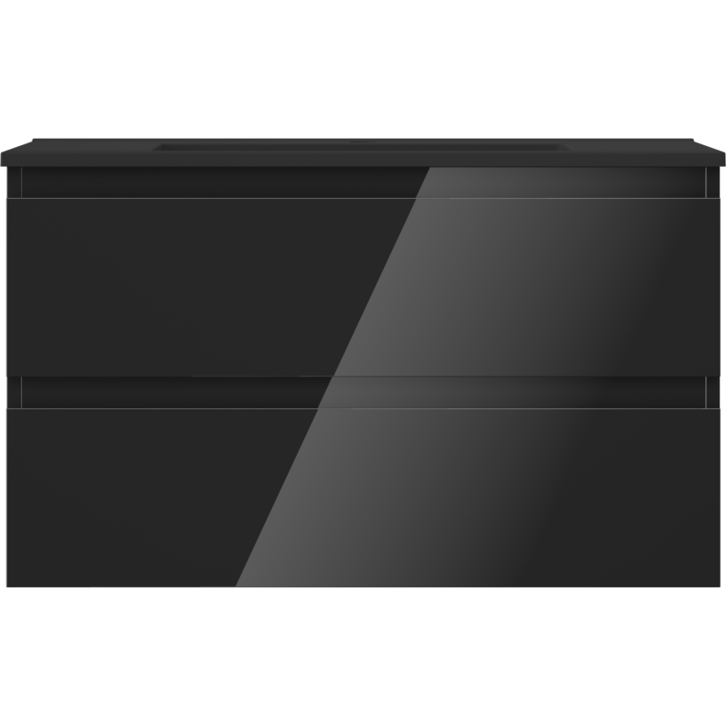 Specyfikacja produktu: Wymiary szafki: Szerokość: 80 cm Głębokość: 46 cm Wysokość: 47 cm Kolor korpus: Czarny połysk Materiał korpus: Płyta lakierowana Kolor front: Czarny połysk Materiał front: Płyta MDF lakierowana Struktura frontu: Gładka Ilość szuflad: 2 Przestronna szuflada z funkcją cichego domyku Powierzchnia odporna na promienie UV Wymiary umywalki: Szerokość: 81 cm Głębokość: 46,5 cm Wysokość: 16,5 cm Kolor umywalki: Czarny mat Materiał umywalki: Konglomerat Otwór przelewowy: Tak Otwór na baterie: Tak Produkt zmontowany