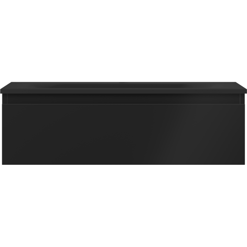 Specyfikacja produktu: Wymiary szafki: Szerokość: 80 cm Głębokość: 46 cm Wysokość: 23,5 cm Kolor korpus: Czarny mat Materiał korpus: Płyta lakierowana Kolor front: Czarny mat Materiał front: Płyta MDF lakierowana Struktura frontu: Gładka Ilość szuflad: 1 Przestronna szuflada z funkcją cichego domyku Powierzchnia odporna na promienie UV Wymiary umywalki: Szerokość: 81 cm Głębokość: 46,5 cm Wysokość: 16,5 cm Kolor umywalki: Czarny mat Materiał umywalki: Konglomerat Otwór przelewowy: Tak Otwór na baterie: Tak Produkt zmontowany