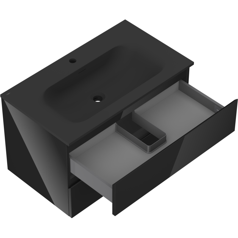 Mexen Orio szafka łazienkowa 80 cm z umywalką Vela, 2 szuflady, czarna połysk/czarna mat - 91A10-08047-2-BFF70-W23M71