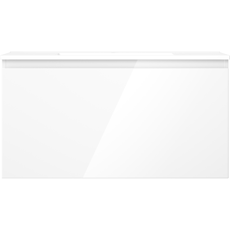 Specyfikacja produktu: Wymiary szafki: Szerokość: 90 cm Głębokość: 46 cm Wysokość: 47 cm Kolor korpus: Biały połysk Materiał korpus: Płyta lakierowana Kolor front: Biały połysk Materiał front: Płyta MDF lakierowana Struktura frontu: Gładka Ilość szuflad: 1 Przestronna szuflada z funkcją cichego domyku Powierzchnia odporna na promienie UV Wymiary umywalki: Szerokość: 91 cm Głębokość: 46,5 cm Wysokość: 16,5 cm Kolor umywalki: Biały połysk Materiał umywalki: Konglomerat Otwór przelewowy: Tak Otwór na baterie: Tak Produkt zmontowany