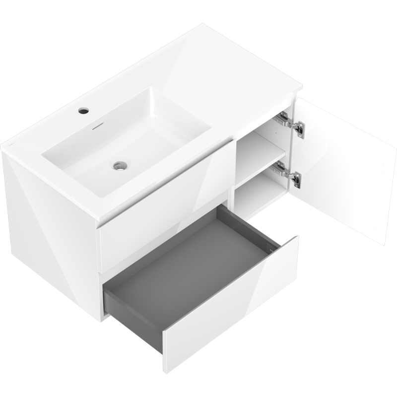 Mexen Orio szafka łazienkowa 90 cm z umywalką Otis lewą, 2S, 1D, biała połysk - 91A13-09047-3-BBFFF00-W18L00