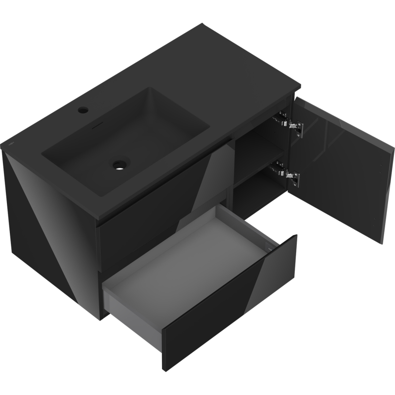 Mexen Orio szafka łazienkowa 90 cm z umywalką Otis lewą, 2S, 1D, czarna połysk/czarna mat - 91A13-09047-3-BBFFF70-W18L71