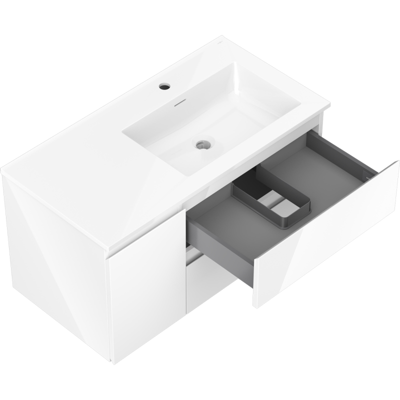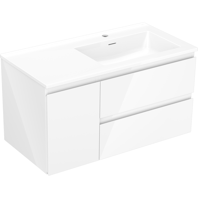 Mexen Orio szafka łazienkowa 90 cm z umywalką Otis prawą, 2S, 1D, biała połysk - 91A13-09047-3-BBFFF00-W18P00