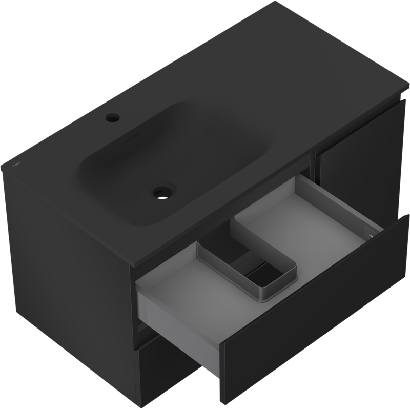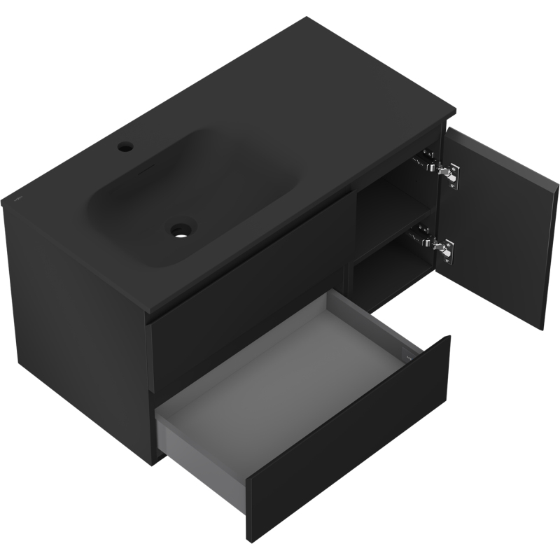 Mexen Orio szafka łazienkowa 90 cm z umywalką Vela lewą, 2S, 1D, czarna mat - 91A13-09047-3-BBFFF71-W23L71