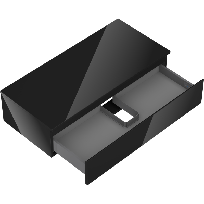 Specyfikacja produktu: Wymiary szafki: Szerokość: 100 cm Wysokość: 23,5 cm Głębokość: 46 cm Kolor korpus: Czarny połysk Materiał korpus: Płyta lakierowana Kolor front: Czarny połysk Materiał front: Płyta MDF lakierowana Struktura frontu: Gładka Ilość szuflad: 1 Przestronna szuflada z funkcją cichego domyku Pełny wysuw ułatwiający dostęp do zawartości szuflad Powierzchnia odporna na promienie UV Wymiary blatu: Szerokość: 100,6 cm Głębokość: 46,5 cm Grubość: 1,8 cm Kolor blatu: Czarny połysk Materiał blatu: Płyta MDF lakierowana Powierzchnia odporna na promienie UV Idealny jako podstawa do umywalek nablatowych Produkt zmontowany