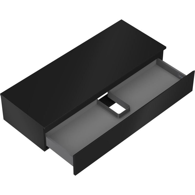 Specyfikacja produktu: Wymiary szafki: Szerokość: 120 cm Wysokość: 23,5 cm Głębokość: 46 cm Kolor korpus: Czarny mat Materiał korpus: Płyta lakierowana Kolor front: Czarny mat Materiał front: Płyta MDF lakierowana Struktura frontu: Gładka Ilość szuflad: 1 Przestronna szuflada z funkcją cichego domyku Pełny wysuw ułatwiający dostęp do zawartości szuflad Powierzchnia odporna na promienie UV Wymiary blatu: Szerokość: 120,6 cm Głębokość: 46,5 cm Grubość: 1,8 cm Kolor blatu: Czarny mat Materiał blatu: Płyta MDF lakierowana Powierzchnia odporna na promienie UV Idealny jako podstawa do umywalek nablatowych Produkt zmontowany