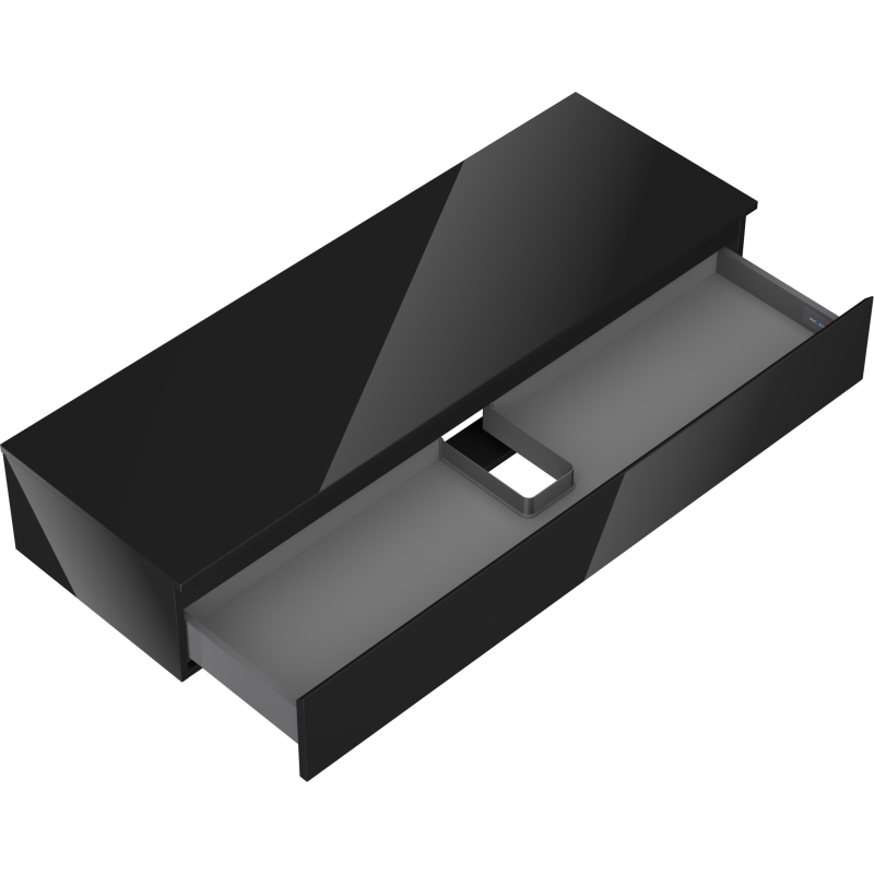 Specyfikacja produktu: Wymiary szafki: Szerokość: 140 cm Wysokość: 23,5 cm Głębokość: 46 cm Kolor korpus: Czarny połysk Materiał korpus: Płyta lakierowana Kolor front: Czarny połysk Materiał front: Płyta MDF lakierowana Struktura frontu: Gładka Ilość szuflad: 1 Przestronna szuflada z funkcją cichego domyku Pełny wysuw ułatwiający dostęp do zawartości szuflad Powierzchnia odporna na promienie UV Wymiary blatu: Szerokość: 140,6 cm Głębokość: 46,5 cm Grubość: 1,8 cm Kolor blatu: Czarny połysk Materiał blatu: Płyta MDF lakierowana Powierzchnia odporna na promienie UV Idealny jako podstawa do umywalek nablatowych Produkt zmontowany