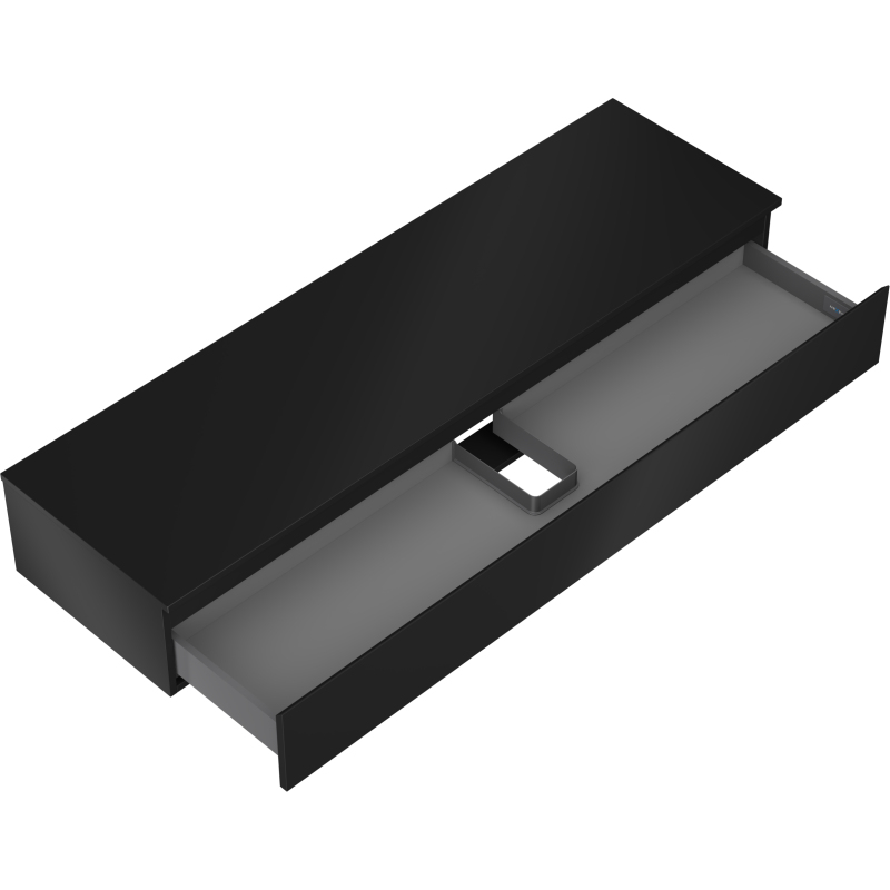 Specyfikacja produktu: Wymiary szafki: Szerokość: 160 cm Wysokość: 23,5 cm Głębokość: 46 cm Kolor korpus: Czarny mat Materiał korpus: Płyta lakierowana Kolor front: Czarny mat Materiał front: Płyta MDF lakierowana Struktura frontu: Gładka Ilość szuflad: 1 Przestronna szuflada z funkcją cichego domyku Pełny wysuw ułatwiający dostęp do zawartości szuflad Powierzchnia odporna na promienie UV Wymiary blatu: Szerokość: 160,6 cm Głębokość: 46,5 cm Grubość: 1,8 cm Kolor blatu: Czarny mat Materiał blatu: Płyta MDF lakierowana Powierzchnia odporna na promienie UV Idealny jako podstawa do umywalek nablatowych Produkt zmontowany