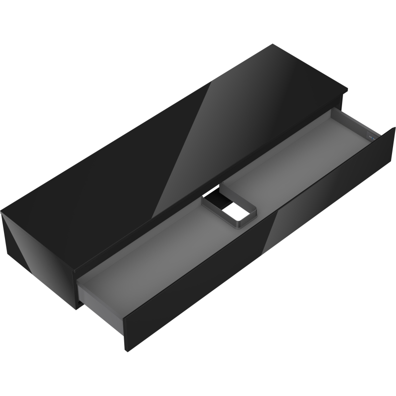 Specyfikacja produktu: Wymiary szafki: Szerokość: 160 cm Wysokość: 23,5 cm Głębokość: 46 cm Kolor korpus: Czarny połysk Materiał korpus: Płyta lakierowana Kolor front: Czarny połysk Materiał front: Płyta MDF lakierowana Struktura frontu: Gładka Ilość szuflad: 1 Przestronna szuflada z funkcją cichego domyku Pełny wysuw ułatwiający dostęp do zawartości szuflad Powierzchnia odporna na promienie UV Wymiary blatu: Szerokość: 160,6 cm Głębokość: 46,5 cm Grubość: 1,8 cm Kolor blatu: Czarny połysk Materiał blatu: Płyta MDF lakierowana Powierzchnia odporna na promienie UV Idealny jako podstawa do umywalek nablatowych Produkt zmontowany