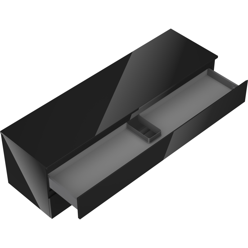Specyfikacja produktu: Wymiary szafki: Szerokość: 160 cm Wysokość: 47 cm Głębokość: 46 cm Kolor korpus: Czarny połysk Materiał korpus: Płyta lakierowana Kolor front: Czarny połysk Materiał front: Płyta MDF lakierowana Struktura frontu: Gładka Ilość szuflad: 2 Przestronna szuflada z funkcją cichego domyku Pełny wysuw ułatwiający dostęp do zawartości szuflad Powierzchnia odporna na promienie UV Wymiary blatu: Szerokość: 160,6 cm Głębokość: 46,5 cm Grubość: 1,8 cm Kolor blatu: Czarny połysk Materiał blatu: Płyta MDF lakierowana Powierzchnia odporna na promienie UV Idealny jako podstawa do umywalek nablatowych Produkt zmontowany