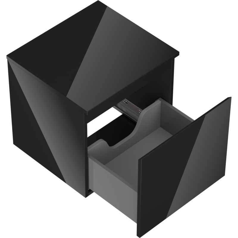 Specyfikacja produktu: Wymiary szafki: Szerokość: 50 cm Wysokość: 47 cm Głębokość: 46 cm Kolor korpus: Czarny połysk Materiał korpus: Płyta lakierowana Kolor front: Czarny połysk Materiał front: Płyta MDF lakierowana Struktura frontu: Gładka Ilość szuflad: 1 Przestronna szuflada z funkcją cichego domyku Pełny wysuw ułatwiający dostęp do zawartości szuflad Powierzchnia odporna na promienie UV Wymiary blatu: Szerokość: 50,6 cm Głębokość: 46,5 cm Grubość: 1,8 cm Kolor blatu: Czarny połysk Materiał blatu: Płyta MDF lakierowana Powierzchnia odporna na promienie UV Idealny jako podstawa do umywalek nablatowych Produkt zmontowany